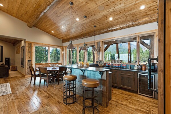 Family relaxation and fun doesn't get any better than this. The fresh water spring fed pond is complete with boat dock, canoe, kayaks, and tubes. Enjoy a fun game of sand volleyball right next to the pond. Relax as you take in the expansive views from the patios, oversized hot tub and fire pit for late night big sky s’mores. The gym with NBA quality soft wood floor is set up for pickleball, full court basketball, volleyball, badminton, dodgeball, corn hole, plus aerobic and lifting equipment. The game room has pool, ping pong, foosball, game table and bar with espresso, latte, cappacino, steamers, cold brew, Keurig, traditional coffee, Blendtec smoothies, sonic ice and flavors to mix in. The high end theatre welcomes your family and friends with huge screen and high end audio system. Home automation includes music throughout home and outdoors. There is an additional TV room with surround so the kids can enjoy watching movies, sports or gaming without hearing the other group.
