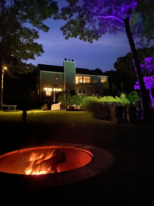 Al primo piano si trova la camera da letto principale con letto matrimoniale, e una vasca idromassaggio e doccia separata nel bagno padronale. Altre due camere da letto al primo piano, ciascuna con due letti singoli, più un ulteriore bagno completo al piano di sotto. Cucina completamente attrezzata, con piano cottura a gas, microonde, caffettiera Keurig e pentole da cuoco. Sala da pranzo e soggiorno con pianoforte anche al primo piano. Grandi ponti fuori della sala da pranzo e camera da letto principale di fronte alla piscina e cortile. Griglia a gas di grandi dimensioni sul ponte con collegamento al serbatoio del propano di casa (non è necessaria alcuna ricarica). Tavolo da pranzo per 8 sul ponte.