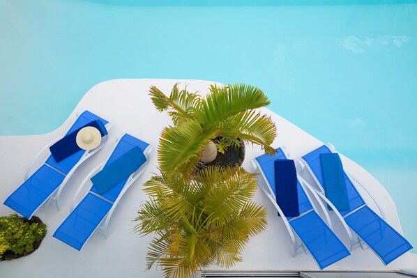 The building consists of 3 suites and our Suite Love Deluxe is the only one that has an integrated bathtub next to the window with views to the pool and an exclusive terrace with its hammocks, private entrance to its area, with its own garden with a fully privatised outdoor table overlooking the pool, ideal for romantic breakfasts and meals.