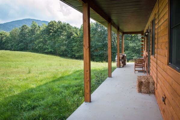 Questa cabina promette anche la notte più buia dalla veranda che tu abbia mai visto. Goditi la solitudine e una notte stellata nella nuova vasca idromassaggio Jacuzzi di Mountain Mist prima di scivolare nelle morbide vesti di lui e lei!
