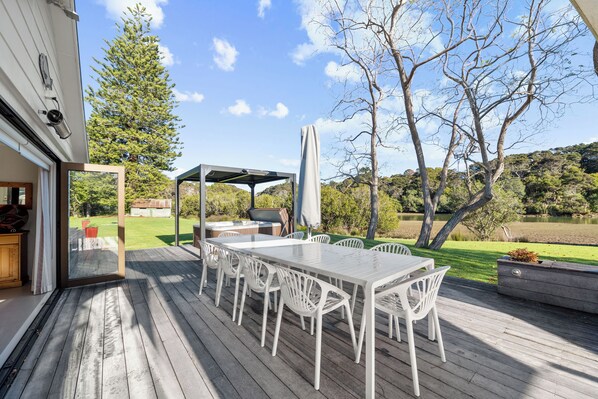 Whip up a tasty brunch for your group or family and enjoy an alfresco meal under the umbrella. Come evening, immerse yourself in pure bliss with a soak in your private spa while your group fires up the Weber and winds down on warm summer nights.