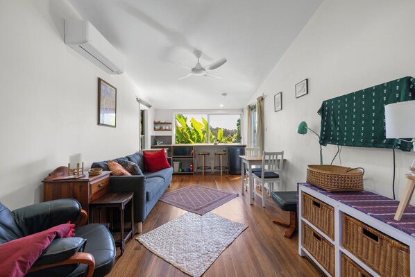 Tucked away at the rear of the main house for complete privacy. Please note: the owner resides in the front/main section of the home, and the space you are booking is the completely private rear section. It is professionally locked off, with no shared access or shared areas, ensuring you have a quiet and very private stay. This charming 2-bedroom, 1-bathroom eco retreat offers the perfect escape in the heart of picturesque Hat Head. Surrounded by lush gardens and framed by headland views, it’s a peaceful haven where you can truly slow down and unwind.