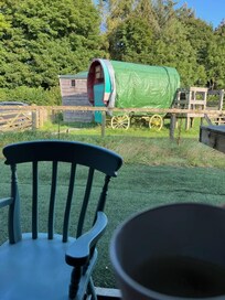 What can I say , this place is amazing . We got there at 8pm on Friday and was greeted by Annette who was so lovley , she had warmed up the hot tub for us and everything was ready. We stayed in the little red gypsy caravan and it was so cute! Perfect for a couple.