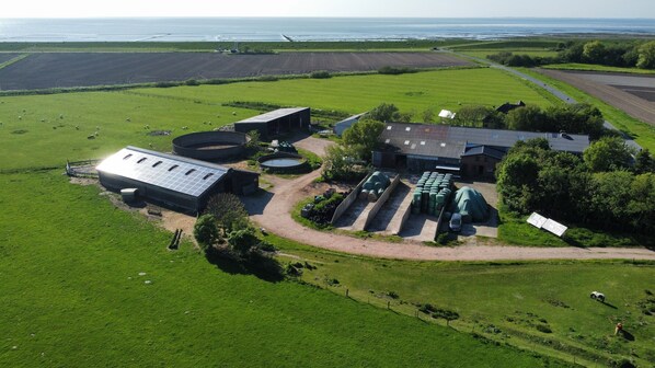Il nostro agriturismo si trova direttamente sul Mare del Nord nel distretto di Dithmarschen. La casa vacanze Deichblick fa parte della fattoria e gode di una vista diretta sull'argine e sui prati e sui terreni della fattoria. Sull'altro lato della strada poco frequentata si trova la casa vacanze Holle con 2 appartamenti per le vacanze e dietro di essa il mini-campeggio. Dal retro si ha una vista sul pascolo di pecore e pony e sull'aia. Ci sono molte aree salotto in giardino con attrezzature per il barbecue, sedie a sdraio e aree gioco.