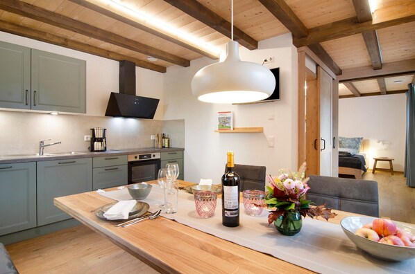 Questo appartamento dispone anche di una terrazza privata. Inoltre, i padroni di casa gestiscono una fattoria part-time con galline, maiali e mucche. Gli animali possono essere visitati solo in presenza dei padroni di casa.