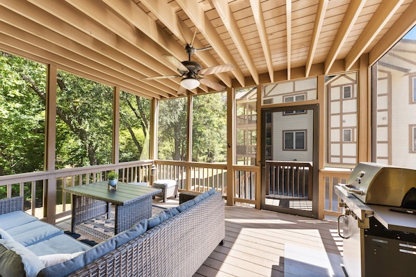 This Luxurious Condo was recently updated with New Décor and Furnishings throughout that highlight the River~Mountain Motif. The Chattahoochee River House 1 is the downstairs condo and features Amazing River views throughout from the many Windows and Balconies! The Welcoming Screened Porch opens into the large main living area that includes a well-equipped Kitchen with Granite Counters, Stainless Steel appliances and more, plus plenty of seating around the table in case you decide to eat in instead of sampling the many delicious restaurants around town! There are both a standard drip coffee maker and a Keurig for your convenience. The comfortable Living Room has been updated with 2 New Sofas, New Rug, Custom made Tables from a local craftsman and is the perfect setting to Enjoy a Movie on the TV with Roku streaming. The gas fireplace is temporarily out of service while we wait for ordered parts.