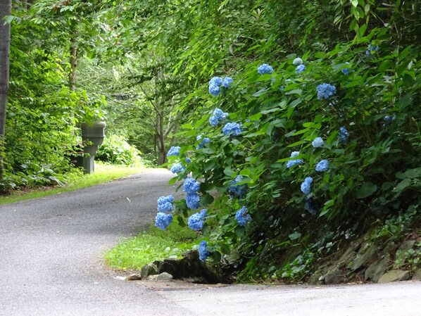 Un'incantevole strada lastricata in pietra conduce attraverso il bosco fino al cottage. Il cortile è soleggiato e pianeggiante per farti divertire con una partita di bocce o lanciare un frisbee. Un grill a gas di grandi dimensioni e utensili da griglia sono disponibili per i cookouts.