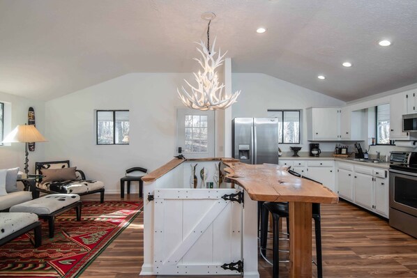 Situato in cima alla collina che domina la fattoria, The Hilltop Cottage è il nostro "Cottage nel bosco". Circondata da alberi, questa dimora appartata è elegante e incredibilmente confortevole. La casa è ideale per famiglie o un piccolo gruppo di amici in cerca di un tranquillo rifugio nella natura, lontano da tutto. Con una camera da letto e un bagno al piano superiore e due camere da letto e un bagno al piano inferiore, questa casa è il nido ideale. Al The Hilltop Cottage, gli ospiti possono usufruire dell'ampio spazio e delle attività che The Horse Shoe Farm ha da offrire. Con un lampadario a corna e decorazioni rustiche al chiuso e avvolgendo il ponte all'esterno della casa, sarai immerso nel paese delle meraviglie dei boschi come nessun altro. Gli ospiti saranno a pochi passi dal fiume Broad francese e da molte delle nostre escursioni e piste. La tranquillità e la bellezza della zona circostante lascia un'impressione memorabile a molti se gli ospiti che decidessero di soggiornare in The Hilltop Cottage.