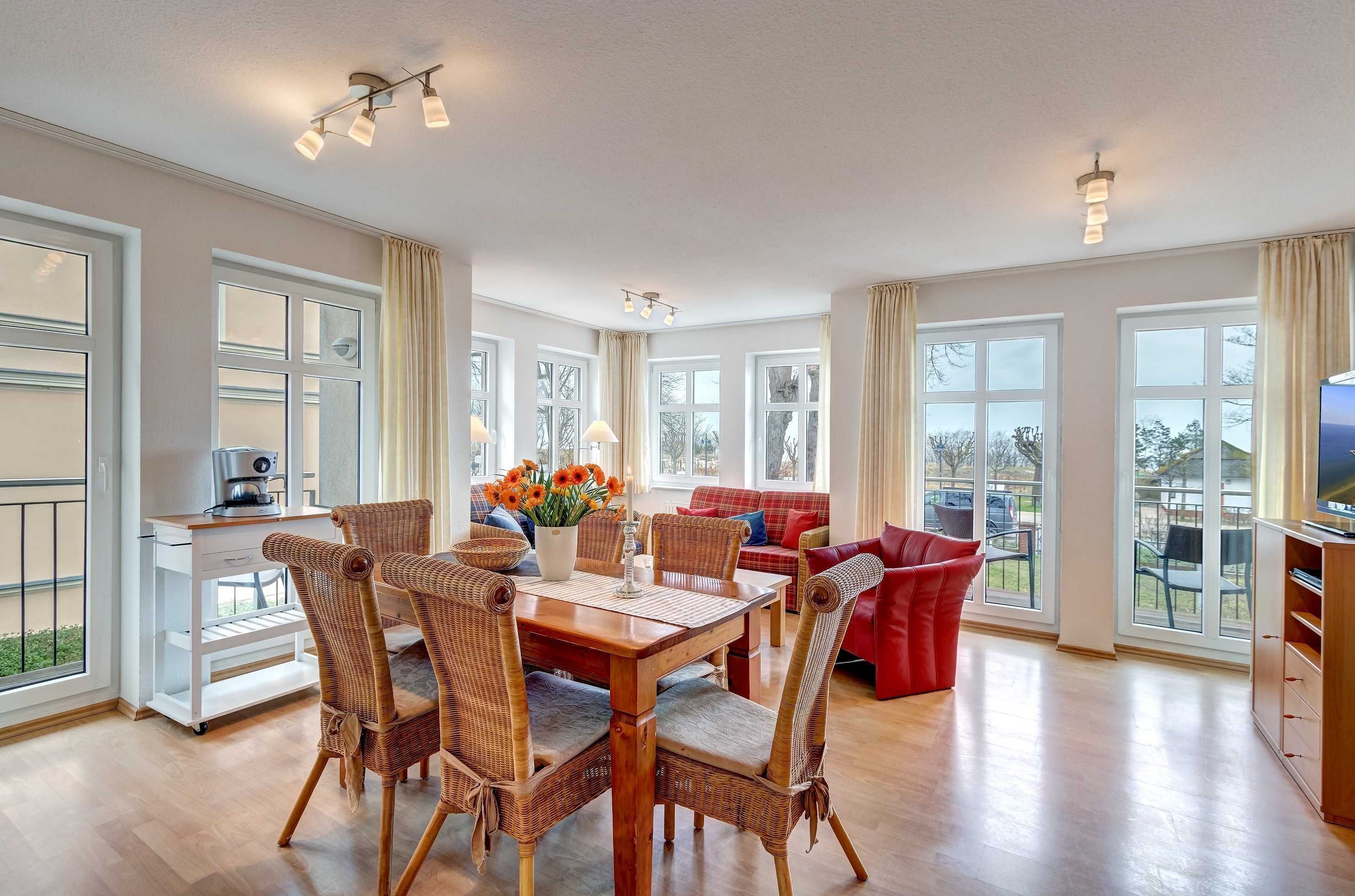 L'appartamento con una superficie di 40 m² si trova al primo piano della casa. L'appartamento di 2 locali è moderno e offre spazio per un massimo di 2 persone per una piacevole vacanza. La zona giorno, con un balcone soleggiato sul lato sud-ovest e posti a sedere, è dotata di un moderno salotto e zona pranzo, TV e radio / lettore CD / DVD. Un angolo cottura completamente attrezzato con piano cottura elettrico, frigorifero con congelatore, lavastoviglie, forno a microonde, macchina da caffè e tostapane si trova nella zona d'ingresso. Sono inoltre disponibili una camera da letto con letto matrimoniale con una superficie letto di 1,60 mx 2,00 me un bagno di luce naturale con doccia e servizi igienici. Non sono ammessi animali Un parcheggio (n. 6) è disponibile nel garage sotterraneo della casa ed è incluso nel prezzo. È possibile parcheggiare le biciclette in una stanza adiacente nel garage sotterraneo.