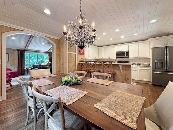 This charming Highlands vacation rental cottage welcomes you with a bright and inviting living room, where natural light streams through large windows. The cozy gas log fireplace and hardwood floors create a warm atmosphere. The well-appointed kitchen features modern appliances, granite countertops, and plenty of cabinet space, perfect for preparing your favorite meals. The home includes three comfortable bedrooms, all on the same level. The primary bedroom is furnished with a king sized bed offering maximum comfort. You'll also find an ensuite bath and is designed for relaxation with a beautifully tiled stand-alone shower and double vanity. Just down the hall is a guest room which also has a king sized bed making this home a great option for couples traveling together. The second guest room has two twins and a bathroom across the hall offers a tub/shower combo.
