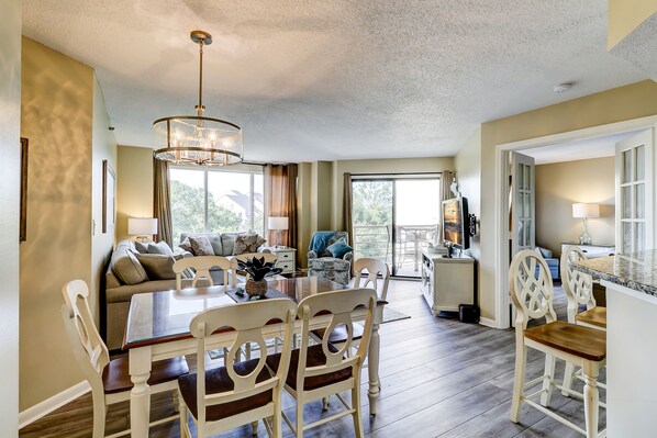 Questa affascinante villa Villamare al 4 ° piano, con 2 camere da letto e 2 bagni, situata a Palmetto Dunes, offre una splendida vista ad angolo dell'oceano. Il soggiorno elegantemente arredato dispone di un grande televisore a schermo piatto e un divano letto matrimoniale. La cucina rinnovata vanta banconi in granito, elettrodomestici in acciaio inossidabile, pavimenti piastrellati e 2 posti a sedere al bar della colazione. La master suite king offre un bagno privato, con cabina doccia e vasca da giardino. La seconda camera da letto è dotata di 2 letti queen-size e il bagno privato ha una combinazione vasca / doccia. Rilassati e divertiti ad ascoltare le onde dell'Atlantico da due balconi privati, accessibili da entrambe le camere da letto e dal soggiorno!