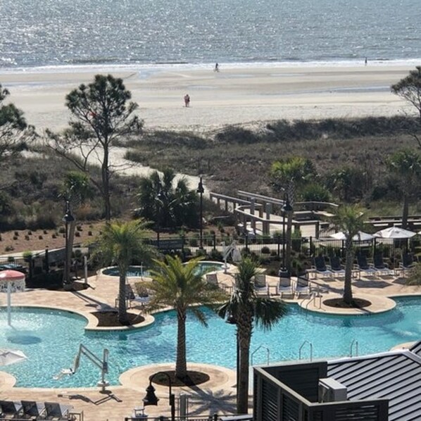 * Google - Hilton Grand Vacations Hilton Head per vedere tutte le foto e le informazioni del resort. Condominio con vista sull'oceano Premium 1.200 SF per 6 + ospiti. Due camere da letto (camera da letto 1 - King, camera da letto 2 - due completa, più divano nel soggiorno). Il bagno principale comprende vasca e doccia separate, TV a specchio e lavabo doppio. Il bagno per gli ospiti ha una doccia. Biancheria di lusso sono inclusi. Tre televisori a schermo piatto e lettore DVD. Lavatore e asciugatore. Cucina completamente attrezzata con elettrodomestici in acciaio inossidabile e granito. Le aree da pranzo includono tavolo e posti a sedere per 6, oltre a posti a sedere al bar della cucina. Soggiorno e camera da letto principale portano al balcone. Servizi del resort: piscina a ingresso zero con vista sull'oceano, vasca idromassaggio, terrazza solarium, centro fitness, bistrot / bar informale con vista sull'oceano, minimarket e sala giochi per bambini, servizio di lavanderia, business center. Sono disponibili biciclette, boogie board e kayak.