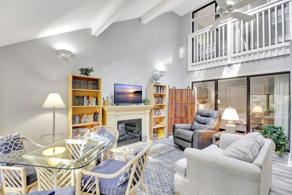 Space, function and style are on point in this beautifully remodeled two bedroom loft villa in Wildwood Spa. Take in the serene and private wooded view from the sliders of this two story gem in Sea Pines. Every surface touched- all new kitchen, baths, furniture, flooring, paint, appliances! Featuring a unique floorplan with both a living and family room, plus a loft, makes 604 Wildwood the most spacious in the neighborhood. Pet friendly, comfortable and centrally located-don't miss this one!