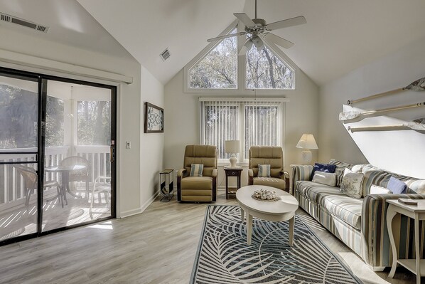 Morbidi colori tropicali e una rilassante vista sulla campagna bassa rendono questa villa al 2 ° piano, con 2 camere da letto e con 2 bagni, il Colonnade Club, una base perfetta per la vostra vacanza all'Hilton Head Island.