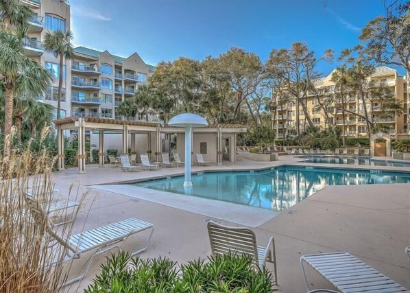 Il complesso Windsor ha due ampie piscine con vista sull'oceano e un centro benessere. Una piscina è l'ideale per i bambini con un'entrata graduata e una cascata a forma di fungo (la parte opposta della piscina è di 4 piedi e 6 pollici). Il complesso offre anche servizi igienici a bordo piscina, docce e area per grigliate, nonché l'accesso agli ascensori e al garage coperto.