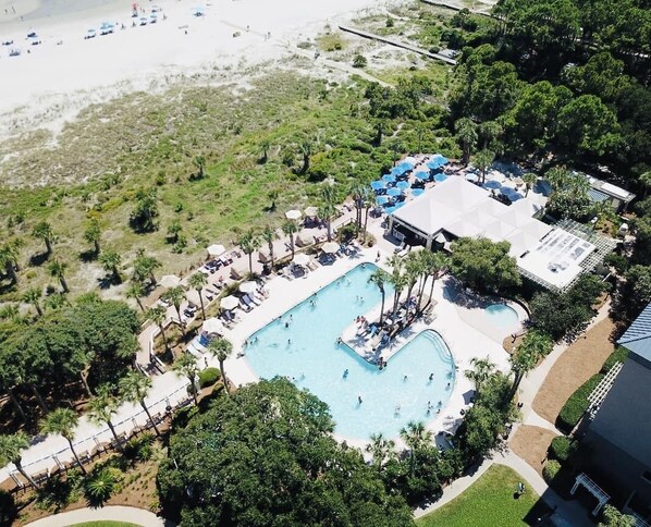 This luxury beachfront villa resort has four outdoor pools, a full-service spa, and a restaurant. Access to Sea Pines resort is included in the rental! A short 5-minute walk from Coligny Beach's activities, a 15-minute stroll of Sea Pines Forest Preserve, and direct beach access with all the amenities.
