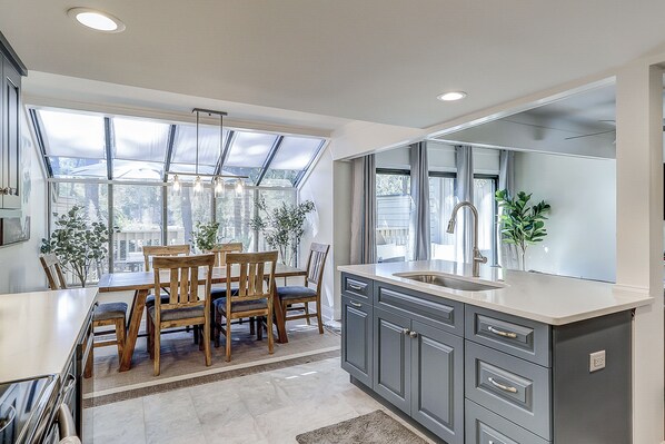 New kitchen, kitchen seating, and updated main bathroom as of winter 2022.