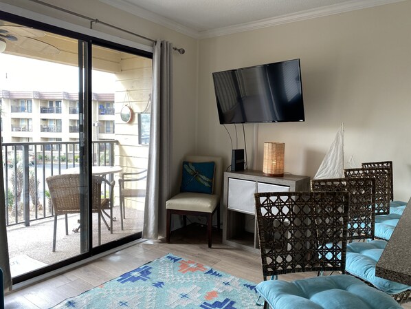We loved our stay here. The pool is just steps away and the beach as well! The tiki bar and ice cream bar next to the pool were perfect for our kids. The resort is super family friendly. Inside the resort there was a beach wagon and two chairs which we used each day. We also rented bikes from the place on the resort and enjoyed biking down to putt putt and to a couple restaurants close by.