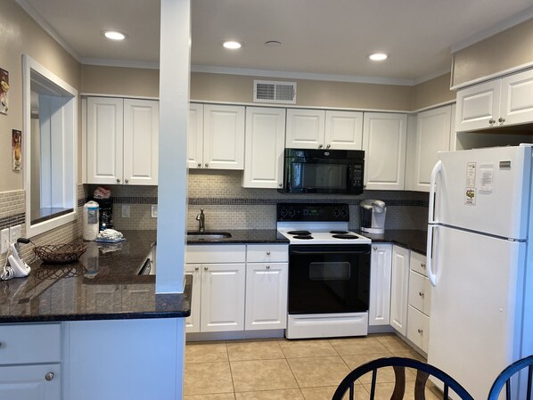 This lovely two bedroom two bath villa is located on the first floor of Admirals Row B building. The master bedroom is furnished with a queen size bed. The guest bedroom is furnished with a bunk bed that consists of a full size on the bottom and a twin on the top. For additional sleeping there is a queen sleeper sofa located in the living room. The kitchen comes fully equipped. Enjoy your morning coffee on the private, furnished balcony or enjoy a short walk to the beach, pool, tennis courts or playground.