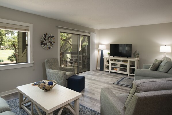 Our properties feature free WIFI, two complimentary bikes for exploring the beauty of Sea Pines, a free local gym membership and much more. Location and view with this villa are prime. Check in is a breeze as we mail your Sea Pines vehicle pass to you ahead of your arrival, eliminating the need to stop and wait in line at security. Just head straight to the villa, park right in front, and take in the beauty of Sea Pines.