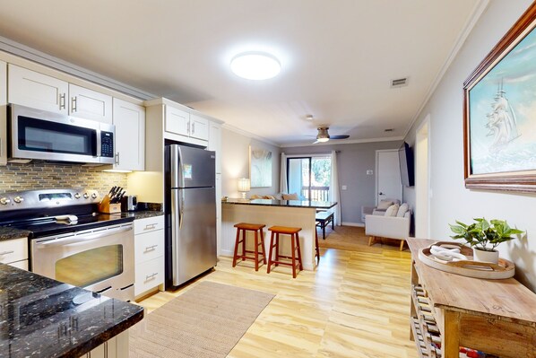 Beachy, bright, and modern – you’ve found the perfect spot for a Hilton Head getaway with this two-bedroom condo. Modern furnishings and an open layout make it easy to spend time together. When you get hungry, the updated kitchen offers a full suite of appliances and plenty of prep space to whip up some breakfast. It's only a few minutes to the beach via the onsite beach path or just spend the day working on your tan at the pool. The kids will love the nearby Sandbox Children's Museum, or spending the day together as a family in Celebration Park.