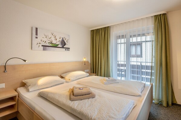 You can expect cozy 2nd + 3rd room apartments with shower, toilet, hairdryer, TV, safe and partly south-facing terrace and or balcony. You have the possibility to use our free W-Lan. Some of the apartments can accommodate up to 4 people. In our lounge with billiard table you have access to reading and information material, various games on request, as well as drinks.