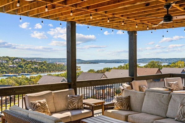 Located in the all NEW highly anticipated lakefront Branson Cove development, This newly constructed 10 bedroom / 9 bathroom vacation rental has a cozy farmhouse feel complete with new furnishings, and an abundance of wood accents. Give Us This Day Chalet is well enough equipped that it can be the DESTINATION, without the need to leave! It is full of in-home entertainment options!! Enjoy two large private decks with sweeping views of Table Rock Lake! Bring your beach towels for swimming or a dip in the hot tub! Teens will love the games too!!