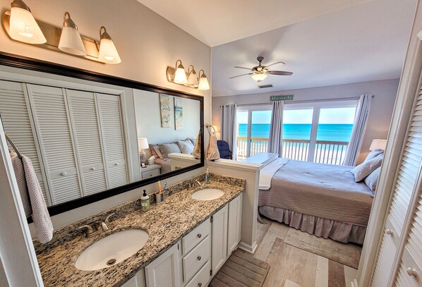 910-B Turtle Cove offre 3 camere da letto e 3 bagni. Le dimensioni del letto includono un re, una regina, un divano letto con rotelle (2 Twins) e un divano letto queen. Cuscini, creme e coperte sono forniti. Le lenzuola NON sono fornite, ma sono disponibili per il noleggio.