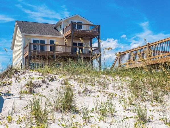 NUOVO ELENCO OCEANFRONT! Questa splendida casa nuova di zecca è la Next to Sea Gallery, completa di opere d'arte originali e personalizzate da gustare mentre si partecipa all'ambientazione perfetta per la tua vacanza da sogno in riva al mare! Con 4 camere da letto lato oceano ciascuna con cursori che accedono a uno dei ponti e una camera da letto lato baia con vista su Topsail Sound, questa struttura offre viste sull'Oceano Atlantico da quasi ogni stanza, con tutti i comfort che desideri fare una fantastica vacanza in famiglia : cucina moderna con elettrodomestici inox, frigorifero per bevande e grande isola cucina. Molteplici aree del ponte rendono facile prendere in vista mare e brezze oceaniche tra cui un ponte di livello inferiore coperto dal ponte superiore, il ponte superiore aperto parzialmente coperto dal balcone di livello superiore e il balcone privato per i fortunati che soggiornano nella parte superiore suite, per non parlare di un mazzo spazioso sulla passerella per la spiaggia con posti a sedere built-in! La doccia esterna chiusa, comoda e spaziosa, con acqua calda e griglia a gas, aggiunge solo il fascino di questa grande casa! Una posizione ideale a pochi isolati a sud del centro di Topsail Beach, dove potrete distendervi sulla spiaggia o fare una passeggiata a piedi o in auto lungo Ocean Blvd. ai pittoreschi negozi e ristoranti della zona. Combina tutto questo con i letti fatti prima dell'arrivo con lenzuola fresche di bucato e biancheria da bagno inclusa e hai una casa meravigliosamente moderna, lontano da casa, con qualcosa per tutti!