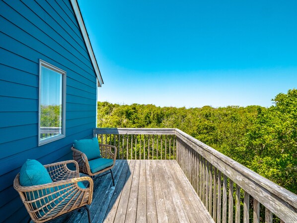 Southwind celebrates nature's beauty right outside its doors, offering glimpses of the ocean as well as serene wooded views. Positioned conveniently across from the beach, everything you need for a perfect beach vacation is just steps away. This vacation home prioritizes your comfort, fitted with a full kitchen including the essentials such as a stove, oven, refrigerator, microwave, and even a Keurig coffee maker. To ensure a seamless stay, amenities like a washing machine, dryer, wireless internet, TV, and air conditioning are also part of the package.
