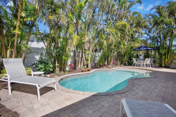 This home was a perfect fit for our family. The pool was very clean and just steps away from the backdoor. Plenty of privacy with a tropical paradise in the backyard. Plenty of seating and lounge chairs. Beach chairs, pool toys, and beach towels were a great surprise. We have rented many vacation homes over the years and this is right up there with the best. Very spacious and clean. We enjoyed our time on the island. October is the best time of the year. See you next October!!