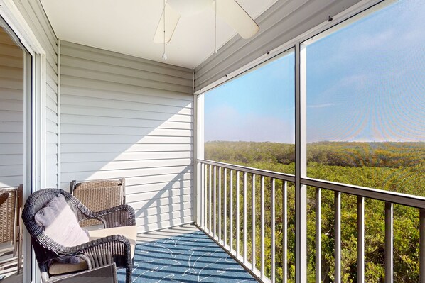 Quando hai finito in spiaggia, rilassati nella piscina riscaldata in comune o goditi la vista dal lanai schermato. Per una maggiore privacy, tornare ai confini pacifici del condominio per rilassarsi. Pet i vostri cani (benvenuti per una piccola tariffa notturna - 25 libbre al massimo, per favore) mentre vi rilassate nella zona giorno e godetevi il WiFi gratuito e la TV a schermo piatto. La cucina offre molto spazio sul bancone e tutti gli elettrodomestici necessari per preparare qualcosa di gustoso. Goditi il tuo pasto al tavolo mentre trascuri la riserva.