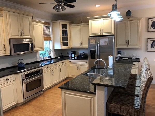 La casa della famiglia Salty Dogs ha tutti i nuovi pavimenti in legno e piastrelle, cucina gourmet con ripiani in granito e elettrodomestici di aggiornamento. Ci sono due bagni e mezzo con granito e piastrelle di ceramica.