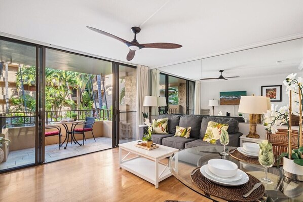 Enjoy your next Hawaiian getaway from this 1-bedroom, 1-bathroom condo at the Paki Maui Resort, West Maui. Ideal for couples, small families, or solo travelers, Paki Maui 217 serves as the perfect home base for your daily adventures on the Valley Isle. The condo is thoughtfully appointed with everything you need for a comfortable stay, including a fully equipped kitchen to prepare meals at your leisure. Step out onto your furnished outdoor lanai and take in the tranquil view of the resort's lush gardens and soothing waterfall feature. It's the ideal spot to enjoy your morning coffee or relax after a day of exploring Maui's stunning beaches and attractions. A short walk from your doorstep brings you to the beach out front to enjoy breathtaking sunsets, and the resort also features an oceanfront swimming pool and hot tub, providing even more ways to relax and unwind. With its convenient location, you'll be close to West Maui's stunning beaches, renowned dining, local shops, and popular attractions like Whaler's Village at Kaanapali Beach. At Paki Maui 217 everything you need for an unforgettable Maui vacation is within easy reach!