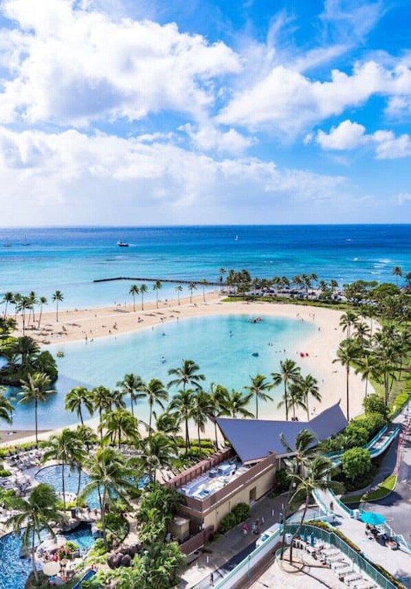 The iconic Ilikai Building is centrally located next to Hawaiian Hilton Village that features public lagoon perfect for kids, Waikiki Beach with popular surfing spot just across the street from Ilikai. Ala Moana beach and park (great for swimming or running) with public tennis and beach volleyball courts, Ala Moana shopping center and all Waikiki attractions and restaurants are within walking distance or scroll around on BIKI bikes with 100 of station around the city.