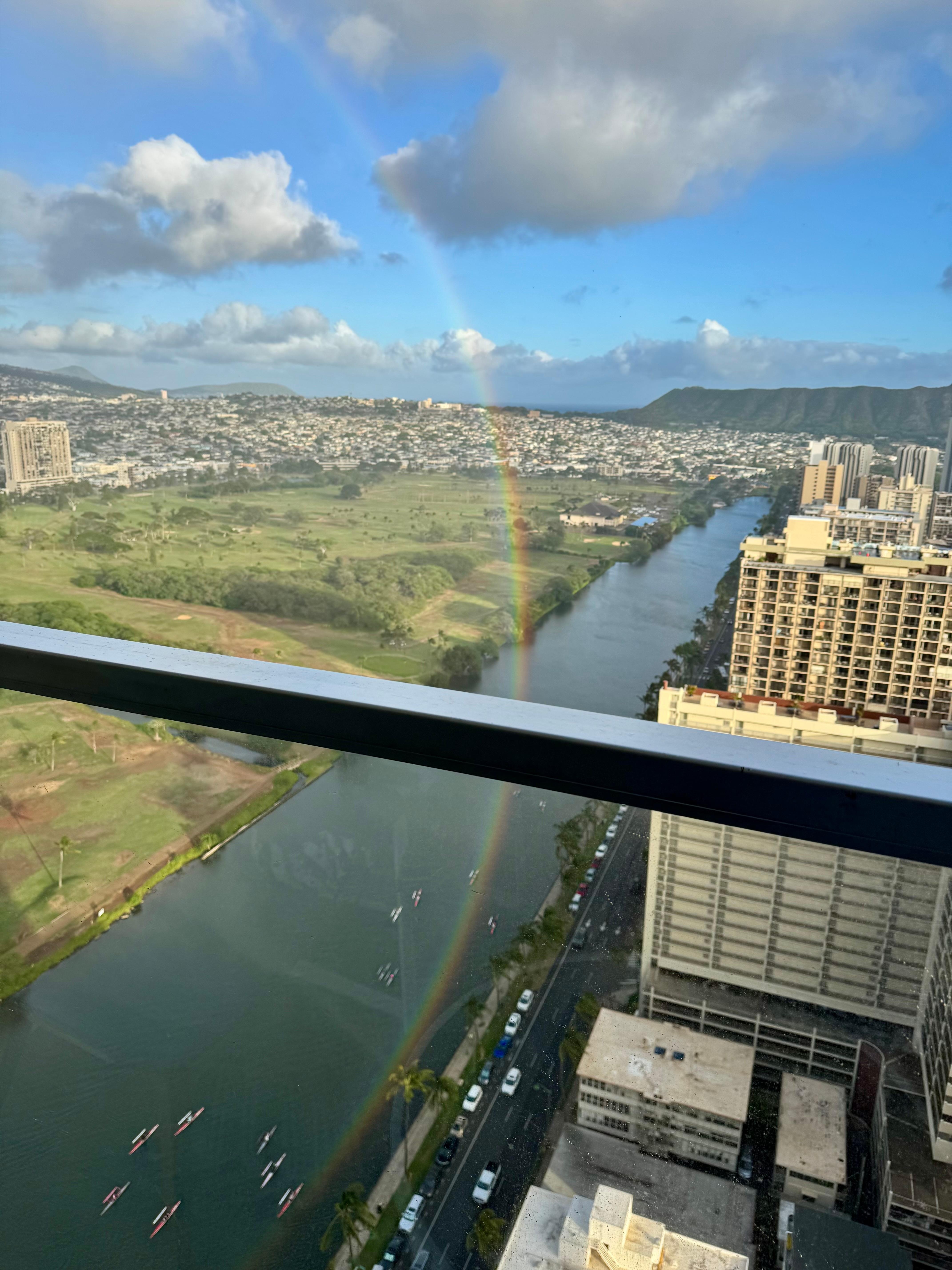 View: Golf Course, Mountain, City, Canal, Partial Ocean, and Rainbow