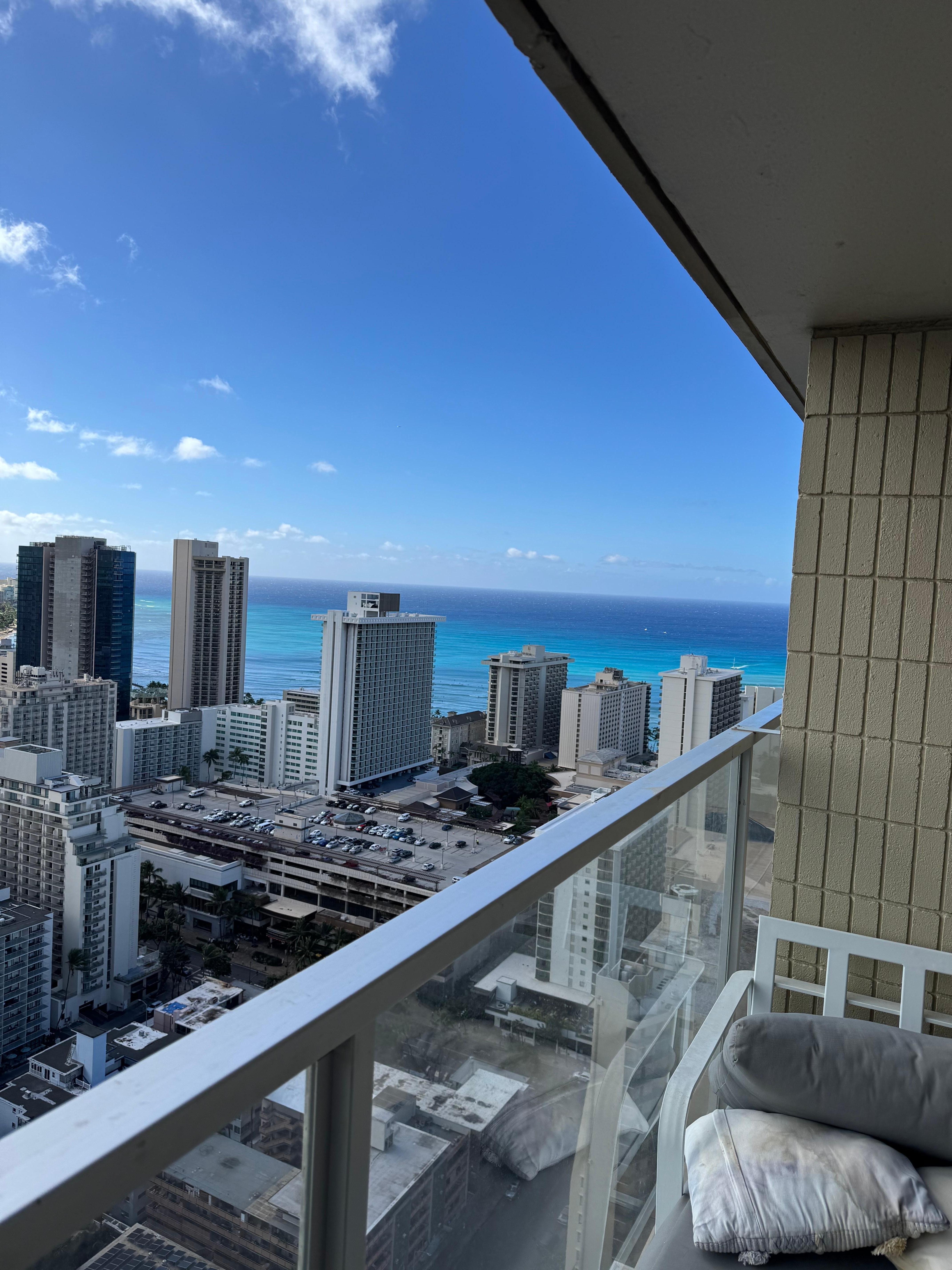 We stayed for 10 days and were pleased with the accommodations. As others have noted the check-in process was a headache, the codes provided do not work. A message using the VRBO app to renter was returned within 15 mins with a new working code. The suite was nice enough, the view and balcony are why we chose this listing and we couldn't have been happier with that decision. Morning coffee watching the sunrise was amazing! Being on the canal and on the 43rd floor was nice to be away from the noise at street level. I was actually pleasantly surprised with the building - though its an older building it was well maintained and the staff are all very friendly. The pool was great to use when we needed a break from the beaches. The laundry area was handy, and the convenience store was also nice to have when we needed a snack/drink. The suite was clean for the most part, there was some spaces with dust but it didn't really bother us. The bathroom and shower could use an update, but we are not picky travellers and again this was not a problem for us. The water pressure other reviewers mentioned was not a problem for us, there was more than adequate water pressure. I would 100% book this suite again if we return to Oahu, and have recommended it to friends thinking about travelling to Oahu