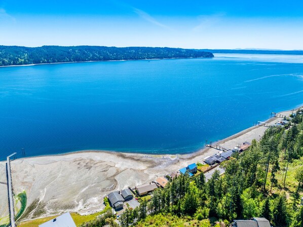 Escape to a picturesque waterfront home nestled on the peaceful shores of Hood Canal. Unwind on the expansive deck and let the soothing sound of waves lapping against the rocky wall wash over you. Located just a few minutes from Hoodsport, you'll have easy access to a shopping center, coffee shop, winery, brewery, and much more.