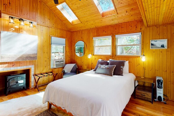 This retreat comfortably sleeps 7 guests across two cabins, all within steps of each other—offering the perfect balance of togetherness and privacy.