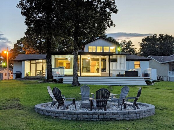 Relax & unwind w/ your family & friends at this gorgeous 5 bedroom, 4 bath 3036 sqft lake front home on Lake Hamilton. Dock your boat just steps from your back door. Soak up the sun or cool off under the covered patio while the kids play on the kayaks & paddleboard. At the end of the day, catch a movie in your own private theater room. Stargaze by the fire pit while roasting S’mores. Shoot a game of pool or melt your cares away in the hot tub. Make your next vacation `a Shore Thing` - Book now!