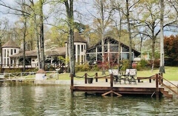 Casa fronte lago con grande terrazza, grandi finestre, soffitto del soggiorno di 15 piedi con un grande spazio tra cui molti posti a sedere, letti comodi, vasca idromassaggio. Sarai in grado di godere di circa 3000 piedi quadrati di spazio casa. Tranquillo quartiere residenziale con cancello di sicurezza. Cucina e servizi igienici adeguati per far sentire il vostro soggiorno come a casa. Questa casa con 3 camere e 2 bagni è a circa 10 minuti dal centro. Lavanderia separata. Camere ampie 2 torrette per rilassarsi o godersi il paesaggio! TV via cavo in soggiorno e 1 camera da letto e WIFI. Posto barca privato se hai una barca più piccola che vorresti portare. La chiatta del partito è solo per nostro uso personale. Deve essere 25 anni per prenotare. Nessuna festa o evento. Macchina per caffè 12 tazze e tazza singola, frullatore, tostapane. Puoi usare le mie spezie, ecc. Per cucinare. Griglia a gas situata fuori dal ponte. Cuscini e coperte extra se necessario.
