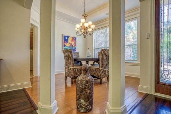 We were very happy with the beautiful home! Plenty of room for 6! Great neighborhood with a short golf cart trip to a fishing hole! Very serene backyard timber view to enjoy morning coffee and plan our day! We will stay here again!