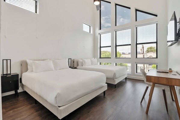 Room 7: Two queen beds, full bathroom
