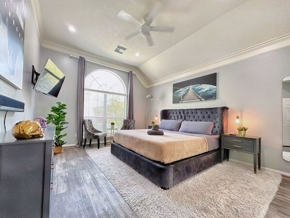 Our property features four spacious bedrooms, each furnished with a comfortable king-size bed, offering the perfect night's sleep after a long day of exploring Houston. In addition, there are two full beds for extra sleeping accommodations.