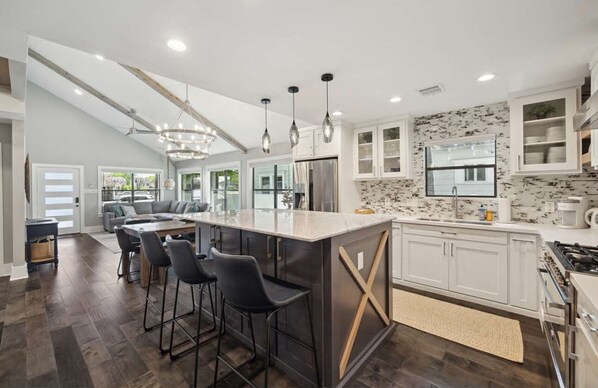 It's the perfect home for everyone to come together and enjoy a night in full of cooking, crafting cocktails, and playing games or getting glammed up for a night on the town.