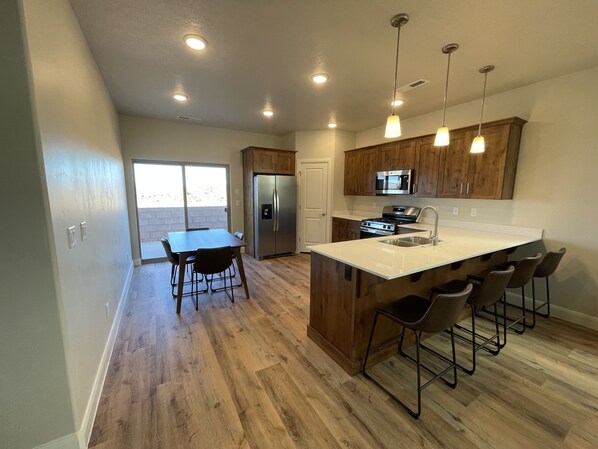 This brand new townhome can’t wait to host you on your trip to southern Utah! This place will be perfect for your temporary relocation. The house has three bedrooms, two full bathrooms and one half bathroom. It accommodates up to ten people: