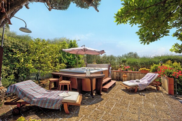 Il punto forte di questo alloggio è l’area esterna privata, che comprende una vasca idromassaggio, giardino, terrazza coperta, balcone, barbecue e doccia esterna. L’uso della vasca idromassaggio richiede prenotazione ed è disponibile tutto l’anno; in inverno è riscaldata a 40°. La jacuzzi può essere utilizzata tutti i giorni dalle 10:00 alle 21:00. Se la jacuzzi non viene utilizzata secondo le regole indicate in casa e all’ingresso, potrà essere richiesto un costo aggiuntivo per il lavaggio e il cambio dell’acqua.