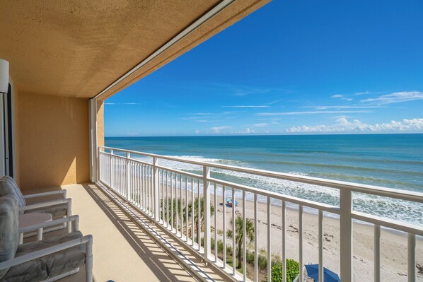 Situato nella splendida Indian Harbour Beach, in Florida, nel centro della contea di Brevard, offriamo agli ospiti un soggiorno rilassante. Tutte le nostre unità si affacciano direttamente sull'oceano e offrono una splendida vista sull'oceano! Ogni unità è un condominio 2 camere da letto / 2 bagni splendidamente decorato. Questo condominio di 1350 sf si trova nell'Indian Harbour Beach Club al sesto piano. Questo complesso condominiale fronte mare è un gioiello nascosto che la maggior parte delle persone non conosce. Coloro che lo sanno, di solito prenotano le loro camere con un anno di anticipo. C'è un parcheggio coperto e aperto. E all'interno, il bagno principale e il bagno per gli ospiti sono completamente attrezzati con tutte le necessità. Lenzuola e asciugamani sono forniti. (ricorda di mettere in valigia i tuoi teli da mare!) TV al plasma sono nel soggiorno, camera matrimoniale e camera per gli ospiti. Il contenuto viene fornito da DirectTV e vengono forniti canali di film gratuiti. La cucina è completamente fornita di tutto ciò che ti aspetteresti. Frigorifero, lavastoviglie, microonde, piano cottura, caffettiera, frullatore, tostapane ecc. La camera da letto principale ha un letto king size e la camera degli ospiti ha due letti singoli. La lavanderia ha una lavatrice e asciugatrice di grande capacità. Il complesso dispone anche di una piscina riscaldata, campi da shuffle board, griglie a gas all'aperto e una zona di lavaggio auto.