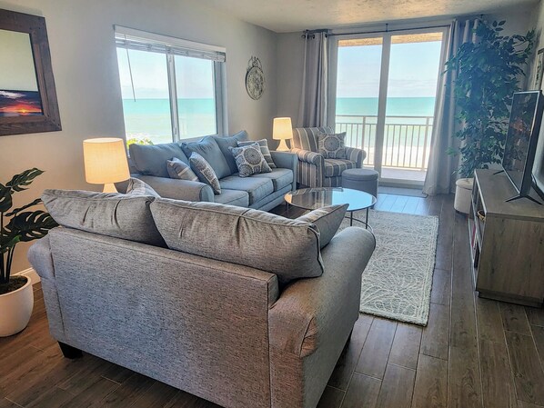 Situato nella splendida Indian Harbour Beach, in Florida, nel centro della contea di Brevard, offriamo agli ospiti un soggiorno rilassante. Tutte le nostre unità si affacciano direttamente sull'oceano e offrono una splendida vista sull'oceano! Ogni unità è un condominio 2 camere da letto / 2 bagni splendidamente decorato. Questo condominio di 1350 sf si trova nell'Indian Harbour Beach Club al secondo piano. Questo complesso condominiale fronte mare è un gioiello nascosto che la maggior parte delle persone non conosce. Coloro che lo sanno, di solito prenotano le loro camere con un anno di anticipo. C'è un parcheggio coperto e aperto. E all'interno, il bagno principale e il bagno per gli ospiti sono completamente attrezzati con tutte le necessità. Lenzuola e asciugamani sono forniti. (ricorda di mettere in valigia i tuoi teli da mare!) TV al plasma sono nel soggiorno, camera da letto matrimoniale e camera per gli ospiti. Il contenuto viene fornito da DirectTV e vengono forniti canali di film gratuiti. La cucina è completamente fornita di tutto ciò che ti aspetteresti. Frigorifero, lavastoviglie, microonde, piano cottura, caffettiera, frullatore, tostapane, ecc. La camera da letto principale ha un letto king size e la camera degli ospiti ha due letti singoli. La lavanderia ha una lavatrice e asciugatrice di grande capacità. Il complesso dispone anche di una piscina riscaldata, campi da shuffle board, griglie a gas all'aperto e una zona di lavaggio auto.