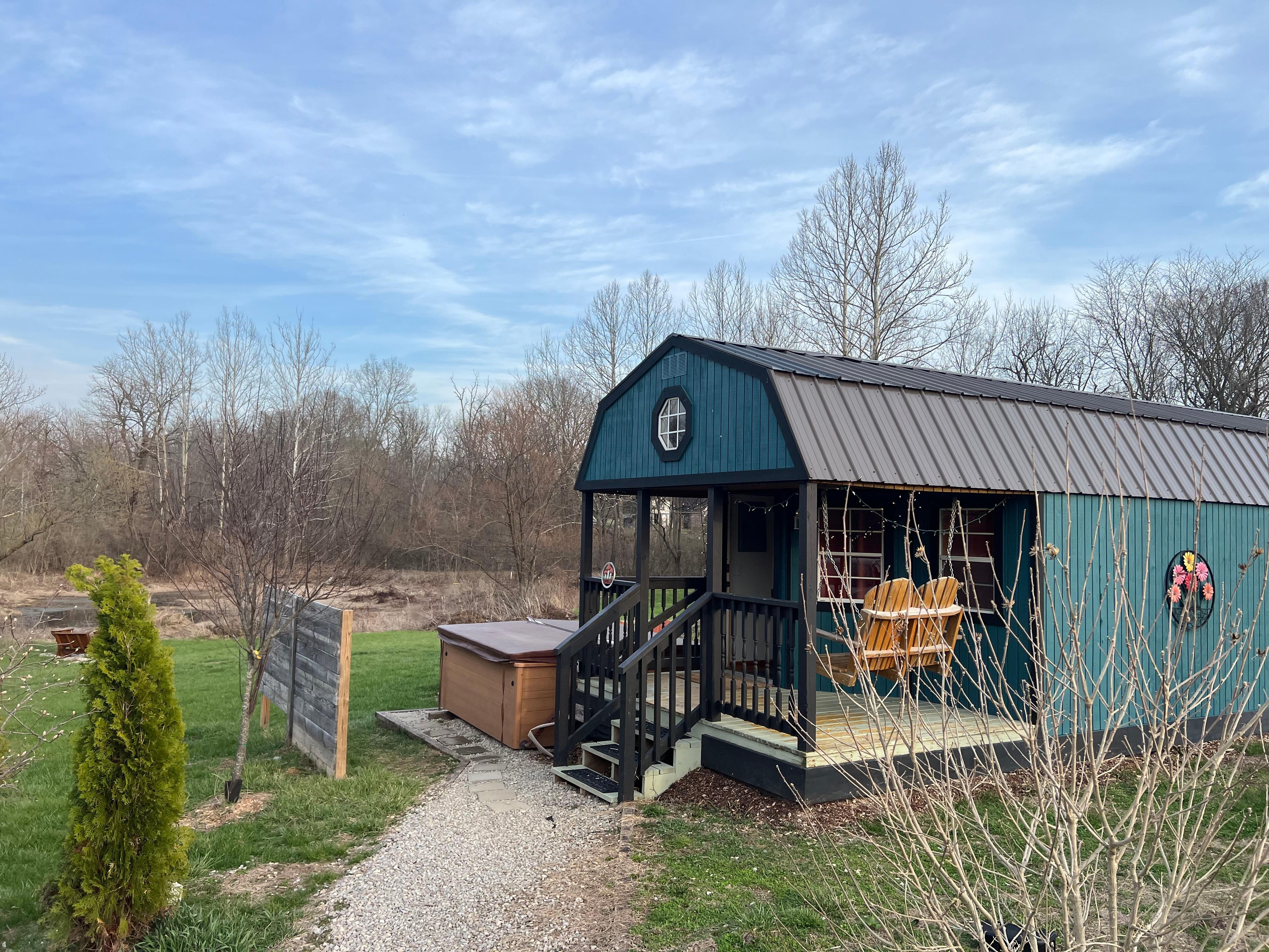 Indulge in a serene & unique retreat, where relaxation is the top priority. Unwind in your own hot tub & take in the tranquil views that surround you. 2nd bed is a loft via a ladder. Enjoy fresh air on the covered porch with a cozy swing with views of a small pond. Immerse yourself in the symphony of nature as you listen to the soothing chirping of crickets, witness the mesmerizing dance of fireflies, observe horses joyfully playing & savor roasting marshmallows over a crackling fire. Well water